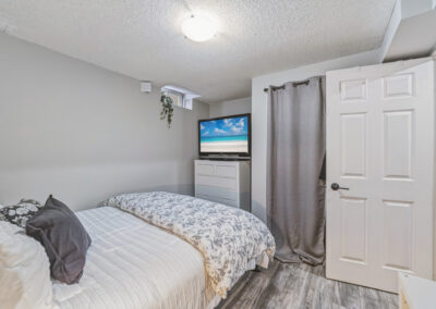 The fully finished basement offers exceptional versatility with two separate staircases and a private side door entrance—ideal for in-law suite potential or multi-generational living. Featuring two additional bedrooms, a full 3-piece bathroom, expansive recreation space, a fireplace, and abundant storage, this level provides flexibility rarely found in similar models.