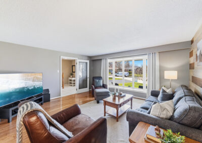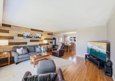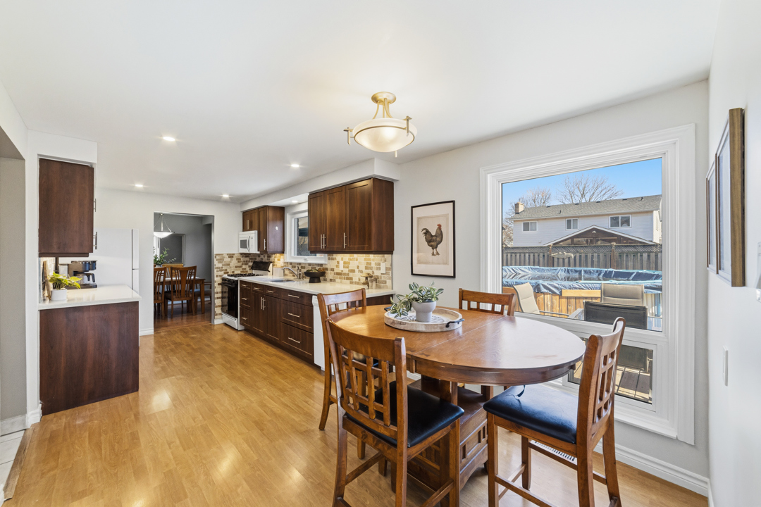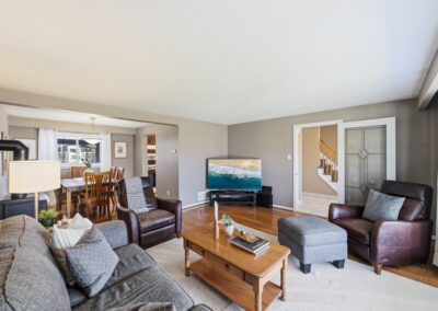 Step inside to a bright, functional main floor designed for everyday living and easy entertaining. A spacious entry leads into the living and dining areas, offering plenty of room to gather or spread out. Along the back of the home, the newly renovated kitchen features a gas stove, generous eat-in area, and seamless access to the mudroom, with a walkout to the backyard deck — ready for summer BBQs, pool days, and relaxing evenings in the hot tub.